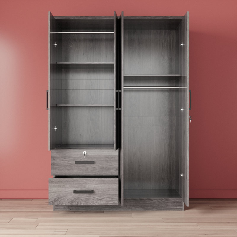 • Design: Modern and sleek wardrobe with a gray wood finish.